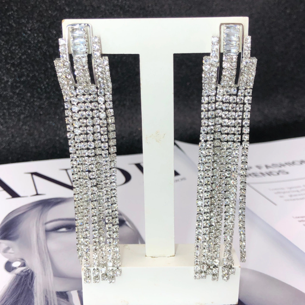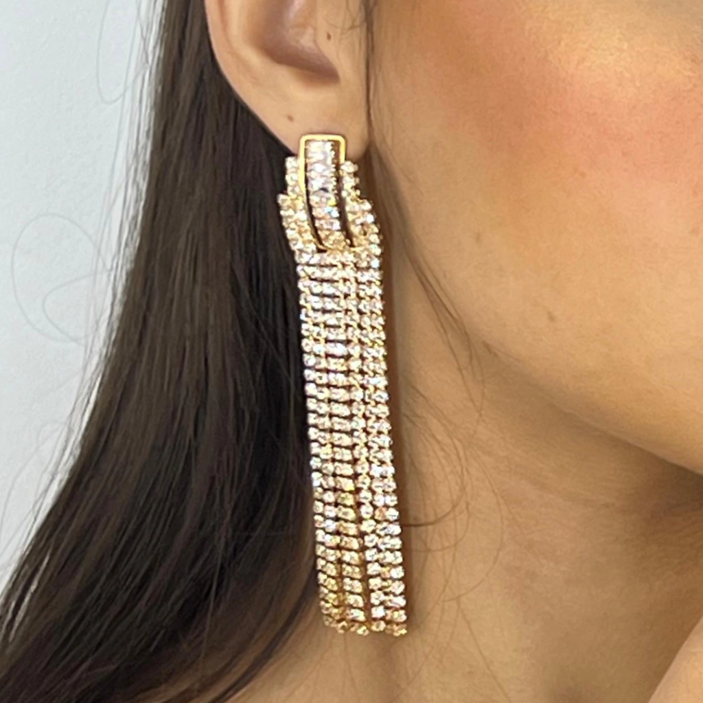 Brinco de festa com franjas elegantes e pedrarias de zircônia na cor cristal, que revelam um brilho irresistível. Essa joia exala sofisticação e modernidade, sendo perfeita para ocasiões especiais. Disponível em dois acabamentos: folheado a ouro 18k ou ródio branco, combina charme e exclusividade para quem valoriza cada detalhe com requinte.